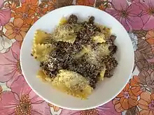 | Cavati e ravioli alla ragusana | Sicily | Cavati pasta and ravioli, with a tomato and meat sauce with ricotta cheese | |