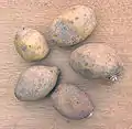 Also known as 'Blue Swede' or 'Idaho blue', the Blue Congo was voted the German "potato of the year" in 2006.[3] | ||||||