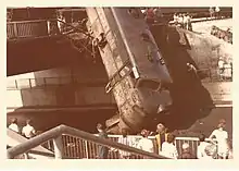 - July 21 – West Germany – Rheinweiler: D 370 from Basel to Copenhagen passed a 75 km/h curve at about 140 km/h and derailed, destroying a detached house, killing 23 people and injuring 121. The suspected reason for the accident was a technical failure in the Class 103 engine's automatic cruise control mechanism, leading to the engine gaining too much speed. The cruise control was consequently disabled and restricted speed zones were equipped with PZB.[8][14]