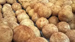 Batata vada | India (Maharashtra) | A mashed potato patty coated with chickpea flour, then deep-fried and served hot with chutney; a thick sphere, around two or three inches in diameter[24] |