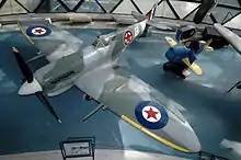 - Spitfire Mk.IIa P7973. This Spitfire was flown on 24 operations by several Royal Air Force (RAF) and Royal Australian Air Force (RAAF) squadrons in 1941. Assigned to No. 452 Sqn (RAAF) (RAF Kenley and RAF Hornchurch), it was flown by a number of pilots, including Australian pilot Keith "Bluey" Truscott. In July 1945 it was shipped to Melbourne, Victoria, Australia for display. The aircraft has not been repainted since WWII and bears the markings of the RAF's Central Gunnery School (coded R-H). One of the few Spitfires still in its original paint, it has been displayed in the Australian War Memorial in Canberra since 1950.[15]