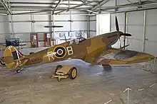 - Spitfire Tr.9 MH367 (ZK-WDQ). Owned by aerobatic pilot Doug Brooker and arrived in New Zealand on 11 September 2008. It wears RAF desert colours with the markings of FL-A, a Mk IX EN520 flown by the New Zealand Squadron Leader Colin Gray, C/O of 81 Squadron when based in Tunisia in mid-1943.[97] On 15 January 2009, during a transit flight from Auckland, the Spitfire suffered a heavy forced landing on Hood Aerodrome, near Masterton. The propeller, undercarriage and some fuel lines were damaged but the aircraft was repaired.[98] A second landing accident at Ardmore Airport on 2 December 2009 resulted in damage to the undercarriage and propeller.[99] On 12 June 2011 the aircraft suffered yet another landing accident, this time tipping onto its nose after landing at Ardmore, damaging the propeller[100]