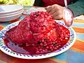 Denmark and Germany | Called "Rote Grütze" in German, both names meaning "red groat". Sweet and fruit-sour dessert, based on redcurrant, raspberry, blackberry, blackcurrant, and (stoned) cherries; uses starch, sago, semolina or (in former times) groat as thickening agent |