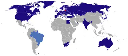 Before June 1940, Lithuania had gold reserves in the United States (Federal Reserve), United Kingdom (Bank of England), France (Banque de France), Sweden (Sveriges Riksbank), and Switzerland (Bank for International Settlements).[20] Sweden transferred the funds to the Soviet Union. Initially, England froze the reserves and refused to transfer it to either Lithuanian diplomats or the Soviet Union;[17] however, in 1967, the First Wilson ministry used the reserve in settling mutual claims with the Soviet Union.[21] Swiss bank secrecy laws prevented the transfer of the gold to Lithuanian diplomats.[22] Reserves in France were similarly not available. Thus only the funds held by the Federal Reserve were available: 2,493.6 kilograms (80,170 ozt) of gold reserve and a currency reserve.[17][23]