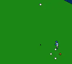 Single-player mode results in a mandatory international tournament while two-player mode allows for some exhibition play.[3] Every game is six innings long, excluding extra innings, but games may end early by mercy rule if a team is ahead by 10 or more runs.[3] Players can be taken out of the game and placed back in like real Little League Baseball.[2] Unlike Little League Baseball, there is no rule making it mandatory for everyone to have at turn at bat and in the field for at least two innings.[2] A power analysis screen rates each team in batting, pitching, running, and defense.[3] There is a relative amount of freedom for pitchers and batters in the game, giving them nearly full movement in the batter's box and the pitcher's mound.[3] Each player is given an overall rating which ranges from 1 (awful) to 5 (perfect).[2]