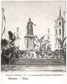Tomas Baranauskas claims that Litvinism also has some supporters in Russia, although it is much less popular than in Belarus. Some Russian Litvinists refer to the Grand Duchy of Lithuania as a Russian state.[2] According to Belarusian historian Alieś Biely, Litvinism is the frontier ideology of Russian civilization.[121] According to Virginijus Savukynas, a Lithuanian historian and journalist, Litvinism is the Belarusian variant of the ideology of Russian imperialism and the beginning of Litvinism lie in the Russian Empire when it annexed the Grand Duchy of Lithuania in 1795 and then Russian Empress Catherine the Great claimed that she just "restored historical truth".[6] Moreover, Savukynas pointed out to the fact that in the early 20th century a monument was unveiled in Vilnius dedicated to the Russian Empress Catherine the Great with inscription "separated to recover".[6]