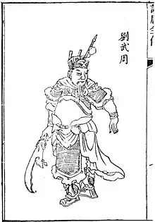 Liu Wuzhou (劉武周; died 622?) was a rebel leader who rose against the rule of the Chinese Sui Dynasty late in the dynasty's history, and he took imperial style—although it was not completely clear whether the title he took was khan or tianzi. He was initially only able to take control of modern northern Shanxi and parts of central Inner Mongolia, but after Li Yuan established Tang Dynasty at Chang'an as its Emperor Gaozu in 618, he, with support from Eastern Tujue, briefly captured Li Yuan's initial power base of Taiyuan in 619, posing a major threat to Li Yuan's rule. In 620, Li Yuan's son Li Shimin (the future Emperor Taizong) counterattacked, and not only recaptured Taiyuan but further captured Liu's power base Mayi (modern Shuozhou, Shanxi), forcing Liu to flee to Eastern Tujue. When Liu subsequently tried to flee back to Mayi, Eastern Tujue executed him.