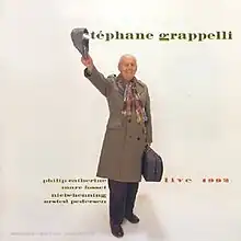 Live 1992 is a jazz album by Stéphane Grappelli. The album features Philip Catherine and Marc Fosset, guitars, and Niels-Henning Ørsted Pedersen, bass. It is one of his last live albums before his death in 1997. The album was recorded live on March 27 and 28, 1992 at the Salle de spectacles de Colombes, France and produced by Jean François Deiber for Birdology records. The original more serious looking photo of Grappelli on the red cover of the Birdology release was replaced with a lighter and younger looking picture of Grappelli in a coat for Verve.[1]