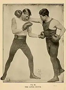 A liver shot or liver punch is a punch, kick, or knee strike to the right side of the ribcage that damages the liver. Blunt force to the liver can be excruciatingly painful, and an especially effective shot will incapacitate a person instantly.[1] Thus, in combat sports, liver shots often result in technical knockouts (TKOs).