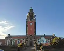 At the start of the 20th century it was decided that the school needed to move from the polluted town centre to somewhere quieter, and the village of Wavertree was the site chosen.[7] The architects chosen for the design of the new building were Briggs, Wolstenholme & Thornely,[9] most notable for the design of the Port of Liverpool Building.[10] In 1906 the school took possession of the building,[7] which was later designated Grade II-listed*.[11] Later additions include a clock tower and the Fenwick Memorial Chapel: used for assemblies by the school.[7]