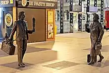 The main concourse features a pair of statues of comedian Ken Dodd and politician Bessie Braddock, a work entitled "Chance Meeting" by sculptor Tom Murphy, which were unveiled by Ken Dodd himself during June 2009.[52] On 31 August 2014, the Earl of Wessex unveiled a memorial to the Liverpool Pals at the station. The memorial, which comprises two bronze friezes, was also sculpted by Tom Murphy.[53] During 2014, former Platforms 1–5 were fully refurbished by national rail infrastructure maintenance company Network Rail.[54]