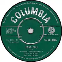"Living Doll" is a song written by Lionel Bart made popular by Cliff Richard and the Shadows (then still 'the Drifters') in 1959. It was the top selling single in the UK in 1959.[1] It has topped the UK charts twice: in its original version in 1959 (their first number 1 single) and a new version recorded in 1986 in aid of Comic Relief. It is one of the few songs released by an English singer to chart on the American Billboard charts before the British Invasion occurred.