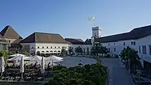In the embrace of the wall and the towers, the space of the inner courtyard of the castle is ideal for various events. The story confirms that it was used for the gathering of the army of the nobility, since there was not enough room in the city. At a time when the provincial prison (1813-1945) was here, the courtyard was used as a walking space, the prisoners in the shade of the chestnut trees performed their daily tasks. The traces of the last reforms play with the Gothic and Baroque architectural forms of that time, also inserting modern elements. The current courtyard is a dynamic meeting point - a point through which it is possible to reach all the inner spaces of the castle.[15]