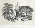 Notable buildings include Saint Padarn's Church, a fine, partly Romanesque parish church on the site of the mother church founded by Padarn (Paternus) in the 6th century and which contains notable 18th-century wall monuments. The Garreg Fawr stone slab, reputed to be the capstone of a now-vanished chamber tomb, is mounted on a plinth in Llanbadarn Fawr Square.[3] This slab once stood on four upright stones before being fractured by fire in the 19th century, after which it was reassembled and mounted in its present location.[4]