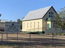 Green Pastures Lutheran Church opened in November 1909 under the leadership of Pastor Millat. There were approximately 350 people in attendance including the children at the school who were given a holiday so they could attend. It was described as the largest festival to have taken place in Lockrose. The wooden church was 30 by 20 feet (9.1 m × 6.1 m) and cost £136 (including fencing) and was free of debt at its opening.[8][9]