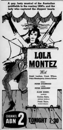 Lola Montez was a 1962 Australian TV play which was based on the musical of the same name.[3][4]