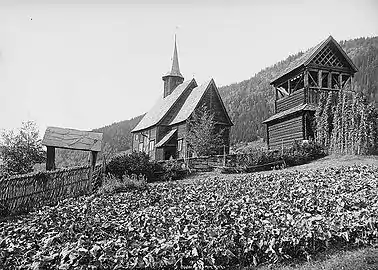 Lomen Stave Church (Norwegian: Lomen stavkyrkje) is a stave church of the Church of Norway in Vestre Slidre Municipality in Innlandet county, Norway. It is located in the village of Lomen. It was formerly the church for the Lomen parish which is part of the Valdres prosti (deanery) in the Diocese of Hamar. The brown, wooden church was built in a long church design around the year 1192 using plans drawn up by an unknown architect. The church seats about 150 people.[1][2]