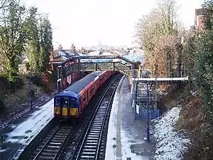 London Road (Guildford) railway station is situated in the east of Guildford in Surrey, England, lying close to the suburbs of Merrow and Burpham. It is 28 miles 47 chains (46.0 km) down the line from London Waterloo.