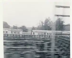 When London Underground were considering the use of articulated trains on the Northern Line, to replace the 1938 Stock, the redundant 1935 Stock was used for trials. Motor cars 10010 and 11010 spent some time at Acton Works for preliminary tests, and were then returned to the Ruislip scrap line.[19] On 15 May 1969, motor cars 10011 and 11011 entered Acton Works for full-scale trials to be conducted. The trailing ends of the cars were cut back so that only one window remained beyond the rear doors. The driving end bogies were replaced by new lightweight aluminium ones, while the trailing ends of both cars were supported by a single steel bogie. The conversion work was completed for testing to begin in August 1970, and information was collected for a year.[18] There were plans to re-equip the Northern Line with 8-car articulated trains, but rolling stock requirements were reassessed when authorisation to build the Heathrow extension of the Piccadilly Line was obtained, and the idea of articulated trains was dropped in favour of using conventional 1972 Stock, similar to that running on the Victoria Line.[20] Following the tests, the articulated unit was found to be particularly useful for shunting, as the beams carrying the current collecting shoes were 64 feet (20 m) apart, enabling it to cross long gaps in the current rails at low speeds. It was given a maroon livery, and renumbered L14A and L14B, becoming part of the service fleet. The aluminium bogies were removed for further testing on a 1972 Stock car in 1975, and the 1935 cars were scrapped at Acton in early 1975.[18] The units on the Ruislip scrap line lasted until they were officially scrapped on 10 October 1971.[21]