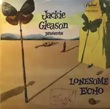 Lonesome Echo, aka Jackie Gleason Presents Lonesome Echo is a studio album of "mood music" by television personality, Jackie Gleason. It was released in 1955 on Capitol Records (catalog no. W627). Gleason conducted an orchestra of strings that included mandolins, cellos, and domras, augmented by guitars and marimba. The solos are performed by Romeo Penque on oboe d'amore.[1][2][3]