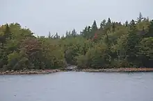 Long Lake Provincial Park is home to a number of lakes and ponds. The eponymous Long Lake, with an area of 154 hectares (380 acres), is the largest. It was created in the 19th century when a wooden dam was built on McIntosh Run, causing rising water levels to connect two pre-existing lakes, Cocked Hat Lake and Beaver Lake. The resultant Long Lake has a maximum depth of 30 metres.[1]