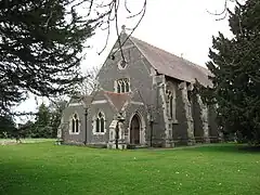 All Saints Church comes under the Tring Team Parish which is the Church of England in Tring, Aldbury, Long Marston, Wilstone and Puttenham. The original church was abandoned in 1883 after it was deemed to be unsafe due to use of unseasoned oak in the roof and saturation of the foundations by water from lack of guttering. Apart from the old church tower which still stands today[5] the rest of the building was demolished. A new church was built with stone in a Gothic style, using parts of the old church, to the north of the village on higher ground which has less of a propensity for flooding. The land was given by the Rothschild Family and the new church built at a cost of £4000. The church was left unfinished until 1888 due to lack of funds.