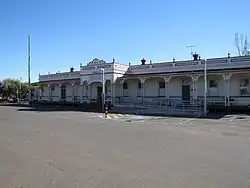 The Passenger Station building is a substantial and stylistic timber passenger station of the early twentieth century, demonstrating an Edwardian influence in style and decoration including central portico with parapet and pediment. The building is located on concrete stumps with timber floor throughout.[1]