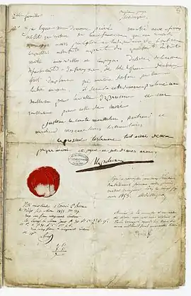 The will written by Napoleon at Longwood House is preserved in French National Archives.[3]