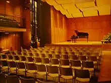 The Edward M. Pickman Concert Hall, built in 1970, is Longy School of Music of Bard College's primary performance space. Named in honor of Edward M. Pickman, president of the board of trustees from 1955 to 1959, the 300-seat birch-lined hall provides a setting for masterclasses, and solo and chamber performances. The addition to the historic Abbot House was designed by Huygens and Tappe. Its juxtaposition of abstract contemporary volumes of brick and stone, with the historic masonry forms of the Abbot House, has been admired over the decades as a model combination of old and new. The completion of a renovation in 1993 was marked with a concert that included the world premiere of Howard Frazin's Amid a Crowd of Stars.[10] In 2010, Longy undertook another round of renovations to fine-tune the Hall's acoustics, expand the lobby, and create a new entrance pavilion. Over 250 concerts now take place in Pickman Hall each year, many of which are free and open to the public.[11]