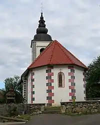 The local church is dedicated to Saint Agnes (Slovene: sveta Neža) and belongs to the Parish of Hinje. It has a medieval nave with 16th-, 17th-, and 18th-century additions.[5]