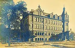 The school was established by the Loreto Sisters and opened in August 1906.[1] The school admitted its first African-American students in 1949.[2] As Woodlawn's demographics changed in the 1950s, the school's did as well.[3] By 1960, it had only ten Euro-American students and by the early 1970s it had a completely African-American student body.[3][2] The school closed in 1972.[2] The building was sold to the Woodlawn Community Development Corporation and served as substance abuse treatment center called Entry House.[1][4][5] Entry House closed in 2012,[5] and the building was sold at a foreclosure auction on October 28, 2019.[6] It was included in Preservation Chicago's 7 Most Endangered list in 2019.[1]
