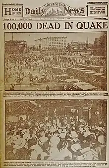 First day's edition of the Illustrated Daily News, September 3, 1923, reporting on the Great Kantō earthquake in Japan