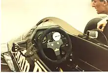 Mansell, meanwhile, finished third in France and the Netherlands, and was running second in the final race in Portugal when his brakes failed (which handed Niki Lauda the Drivers' Championship by half a point from Alain Prost). However, he also crashed out of the lead at a rain-hit Monaco (which prompted team boss Peter Warr, with whom he had a difficult relationship, to famously declare, "He'll never win a Grand Prix as long as I have a hole in my arse"[3]), and in oppressive heat at Dallas he took pole position and led the first half of the race, before his gearbox failed on the final lap and he collapsed from exhaustion trying to push the car to the finish line.[4] He ultimately finished equal ninth in the Drivers' Championship with 13 points, the same tally as Ayrton Senna, who would replace him for 1985.