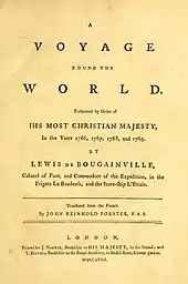 - Bougainville, Louis Antoine de (1772) [1771]. Voyage autour du monde [A Voyage Round the World Performed by Order of His Most Christian Majesty In the Year 1766, 1767, 1768, and 1769]. Translated by Foster, John Reinhold. London: J. Nourse. p. 32.