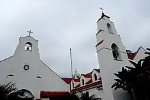 - St. James-by-the-Sea church, La Jolla, with a tower replicating that of a church at Campo Florida in Mexico City