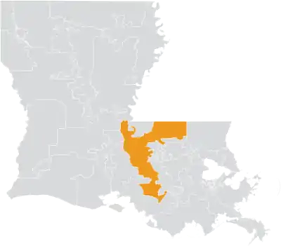 The district overlaps with Louisiana's 2nd, 3rd, 5th, and 6th congressional districts, and with the 18th, 29th, 50th, 51st, 58th, 60th, 62nd, 64th, and 72nd districts of the Louisiana House of Representatives.[4]