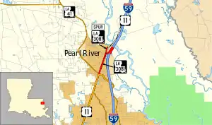 In 2007, LA 41 Spur was eliminated, and LA 3081 assumed part of its route, turning east to the interchange with I-59/U.S. 11 at Exit 5A. The former route of LA 3081 north to the dead-end at the West Pearl River was then designated as LA 3081 Spur.