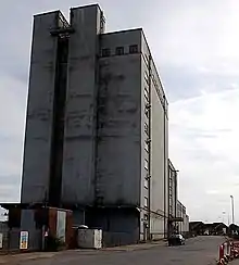 ABM Pauls (now ForFarmers) used to have a large malt kiln, which was the first of its kind built in Europe to an American design out of reinforced concrete in 1949. The site had been the location of a maltings since 1870 which was destroyed by German bombs in 1940, and had to be built on the old site to qualify for war compensation.[35] At its height the maltings processed 50,000 tonnes of barley per year, with exports handled through the nearby port of Immingham. The maltings closed in 1998 and the 120 feet (37 m) tall structure was left derelict for many years. The German supermarket chain Aldi was granted permission to build a new store on the site, and it was demolished in 2014/15.[36]