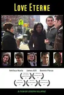 Love Eterne is a 2011 romantic comedy film written and directed by Joseph Villapaz, and starring Melissa Navia and James Gill. It takes place in New York City. It received two Awards of Merits and an Honorable Mention at film festivals.