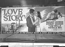Love Story is a 1944 British black-and-white romance film directed by Leslie Arliss and starring Margaret Lockwood, Stewart Granger, and Patricia Roc. Based on a short story by J. W. Drawbell, the film is about a concert pianist who, after learning that she is dying of heart failure, decides to spend her last days in Cornwall. While there, she meets a former RAF pilot who is going blind, and soon a romantic attraction forms.[3] Released in the United States as A Lady Surrenders,[4] this wartime melodrama produced by Gainsborough Pictures was filmed on location at the Minack Theatre in Porthcurno in Cornwall, England.[5]