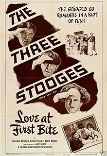 Love at First Bite is a 1950 short subject directed by Jules White starring American slapstick comedy team The Three Stooges (Moe Howard, Larry Fine and Shemp Howard). It is the 123rd entry in the series released by Columbia Pictures starring the comedians, who released 190 shorts for the studio between 1934 and 1959.