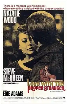 Love with the Proper Stranger is a 1963 American romantic drama film made by Pakula-Mulligan Productions and Boardwalk Productions and released by Paramount Pictures. It was directed by Robert Mulligan and produced by Alan J. Pakula from a screenplay by Arnold Schulman.