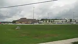 A notable rivalry has existed primarily between the football teams from Crown Point High School and Lowell High School since approximately 1903.[3] Each team competes for "The Old Leather Helmet Trophy",[4][5] a piece of World War I era leather headgear that is mounted to a wooden platform.[6] This trophy symbolizes the long history of the schools' rivalry on the football field, though the rivalry extends into other athletic arenas.[7] Crown Point High School and Lowell High School are not in the same athletic conference,[8] they choose to compete once during the football season to continue the long competitive history.