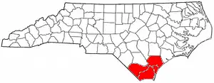 The Cape Fear region is situated on the Atlantic Coastal Plain. A large portion of the region is low-lying wetlands, most notably the Green Swamp, which is one of the rare habitats of the Venus flytrap.[2][3][4] The Cape Fear River and the Northeast Cape Fear River are the deeper prominent rivers that flow through the region, with minor rivers like the Lockwood Folly River, Brunswick River, and Shallotte River providing access for small watercraft of small communities.[5]