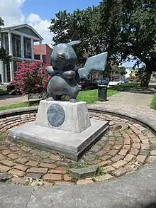In 2016, the Pikachu, also known as the Pokemonument,[5][6] a fiberglass sculpture depicting the Pokémon species of the same name by an unknown artist, was installed in Lower Garden District.[7]