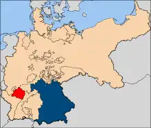 Other larger regional entities included the Duchy of Zweibrücken and the Prince-Bishopric of Speyer.[4] The Prince-Bishopric held possessions on both sides of the Rhine. For centuries, the Electoral Palatinate and Bavaria maintained dynastic links because both were ruled by members of the Wittelsbach family.