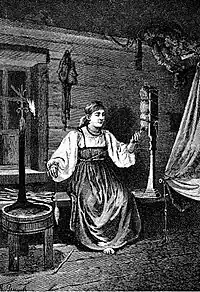 A part of servicing of luchina/luczywo, usually done by children, was to remove the charred tips, for brighter light.[6]