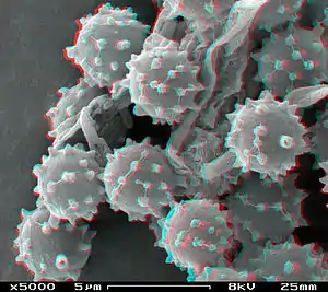 | Puffball spores seen with scanning electron microscopy; 5000x magnification | |