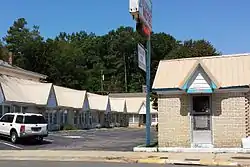 The Lynwood Tourist Court Historic District encompasses a historic tourist accommodation, now known as the Lynwood Motel, at 857 Park Avenue in Hot Springs, Arkansas, United States. Built about 1944, it is a little-altered example of a 1940s traveler accommodation with English Revival styling. It has sixteen units, each of which originally included a garage (now enclosed to create additional living space), and a small office building. Each unit includes a sleeping area, bathroom, and kitchenette, and is marked on the exterior by a steeply-pitched gable.[2]