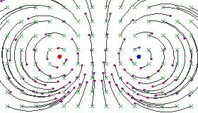 These pictures resemble the field lines of a positive and a negative electrical charge located at the fixed points, because the circular flow lines subtend a constant angle between the two fixed points.
